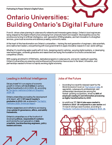 To help municipalities across the province advance digital infrastructure, Ontario’s universities are leading the way in shaping cutting-edge systems, services and technological innovations that improve lives and build economic resilience across Ontario’s regions.